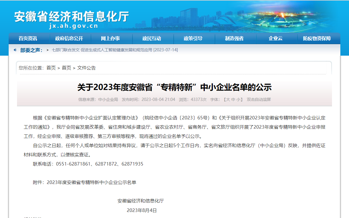 凯时娱人生就是博安徽智能装备股份有限公司被认定为安徽省“专精特新”企业