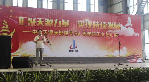 为庆祝建党94周年,充分展现公司成立以来的辉煌成就、广大干部员工干事创业的精神风貌,弘扬正能量,6月27日上午,由凯时娱人生就是博党委主办,党群工作部、工会、团委协办的“汇聚天源力量、实现持续发展——凯时娱人生就是博庆祝建党94周年职工文艺汇演”在公司新区隆重举行。公司领导班子及高管,各单位、各部门助理以上中层干部,退休老同志代表,在公司的人大代表、政协委员,公司第二届职代会、工代会代表,公司成立以来在各条战线上获得荣誉表彰的先进模范人物代表共200余人观看了演出。