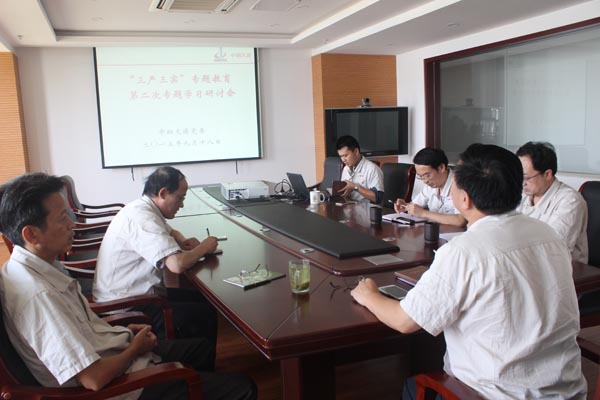 班子成员认真观看了《践行“三严三实”好榜样——中航工业沈飞集团原董事长罗阳》的先进事迹宣传片,集体学习了刘云山关于努力营造良好政治生态的重要讲话以及《国有企业领导人员廉洁从业若干规定》的节选。