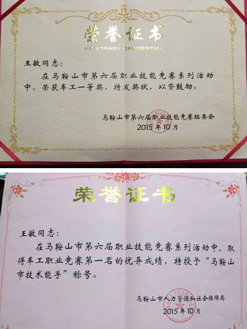 近日,从马鞍山市人力资源和社会保障局传来喜讯,凯时娱人生就是博机械厂金加工班组王敏同志在市第六届职业技能竞赛系列活动中取得车工职业竞赛第一名的优异成绩,获车工一等奖,并被授予“马鞍山市技术能手”称号。