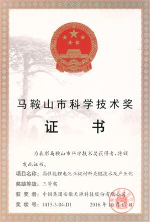 会议宣读了《马鞍山市人民政府关于2014-2015年度马鞍山市科学技术奖励的决定》,凯时娱人生就是博骆艳华、杨洋、裴晓东等同志承担的省科技攻关项目《高性能锂电池正极材料关键技术及产业化》获得“马鞍山市科技进步三等奖”。