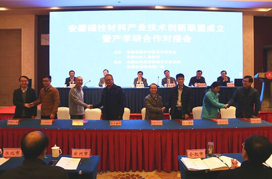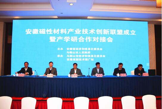 2017年3月10日,安徽省磁性材料产业技术创新战略联盟成立暨产学研合作对接会在马鞍山市召开。全省各地市经信委、科研院校、磁性材料生产企业等相关代表共100余人参加会议。