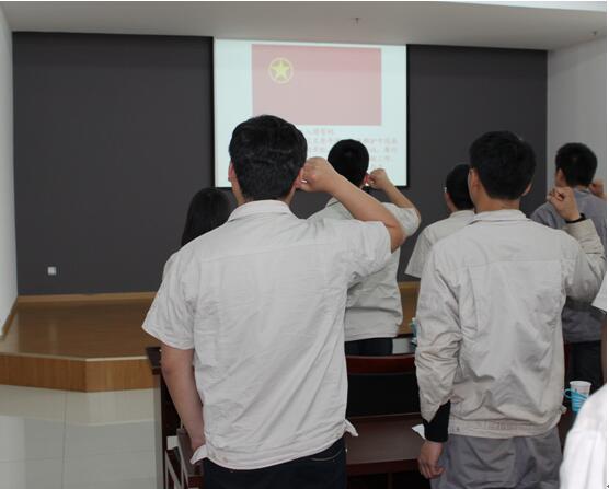 团课后,全体团员青年面对团旗,重温了入团誓词。
