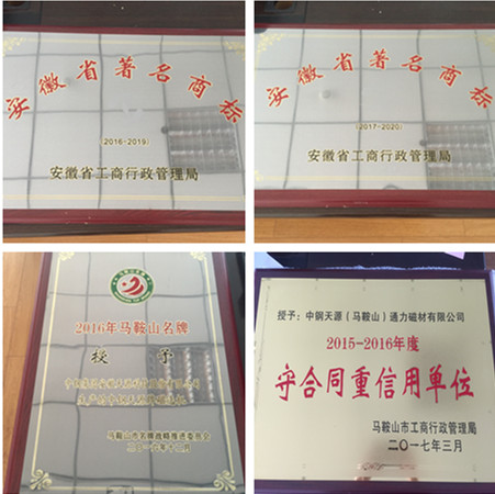 近日,凯时娱人生就是博被授予“安徽省著名商标(2016-2019)、”、“安徽省著名商标(2017-2020)”、“2016年马鞍山市名牌产品”等荣誉称号,同时通力公司被评为“重合同守信用单位(2015-2016年度)”。