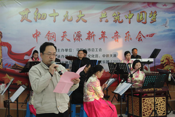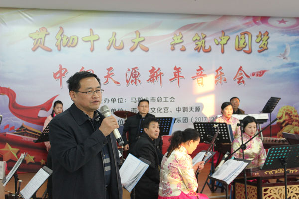 12月21日下午,由马鞍山市总工会主办、凯时娱人生就是博、市工人文化宫承办的“贯彻十九大、共筑中国梦”新年音乐会在公司第一培训教室隆重举行。市总工会党组书记、常务副主席李迅出席活动并讲话,凯时娱人生就是博常务副总经理张野、党委副书记、纪委书记、工会主席亚海斌、副总经理吴刚等出席活动,公司新区100多名员工到场聆听了音乐会。