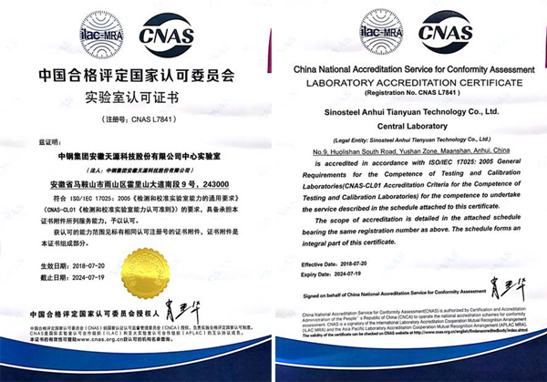 2018年5月19日至20日,中国合格评定国家认可委员会(CNAS)评审组对中钢集团安徽天源科技股份有限公司中 心实验室进行了现场评审。