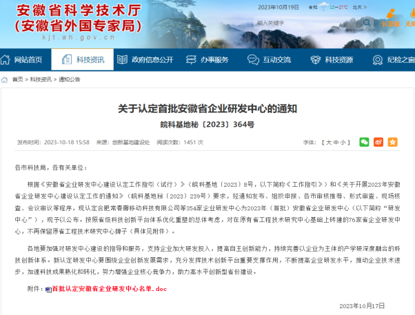 凯时娱人生就是博安徽智能装备股份有限公司通过安徽省企业研发中心认定